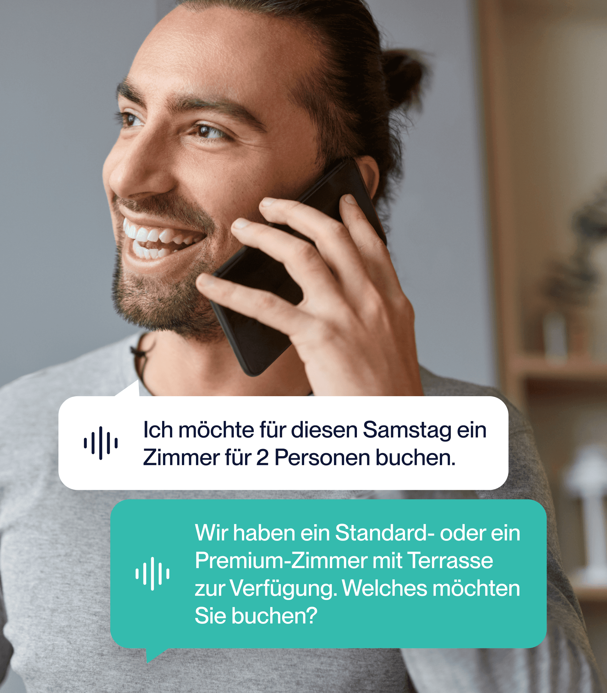 Verwandeln Sie jede Gästeanfrage in einen bestätigten Aufenthalt mit 24/7 mehrsprachiger Voice AI für Hotels — verwalten Sie Verfügbarkeiten, Zimmertypen, Upgrades und Sonderwünsche in Echtzeit, ohne Provisionen und ohne Umsatzverluste.