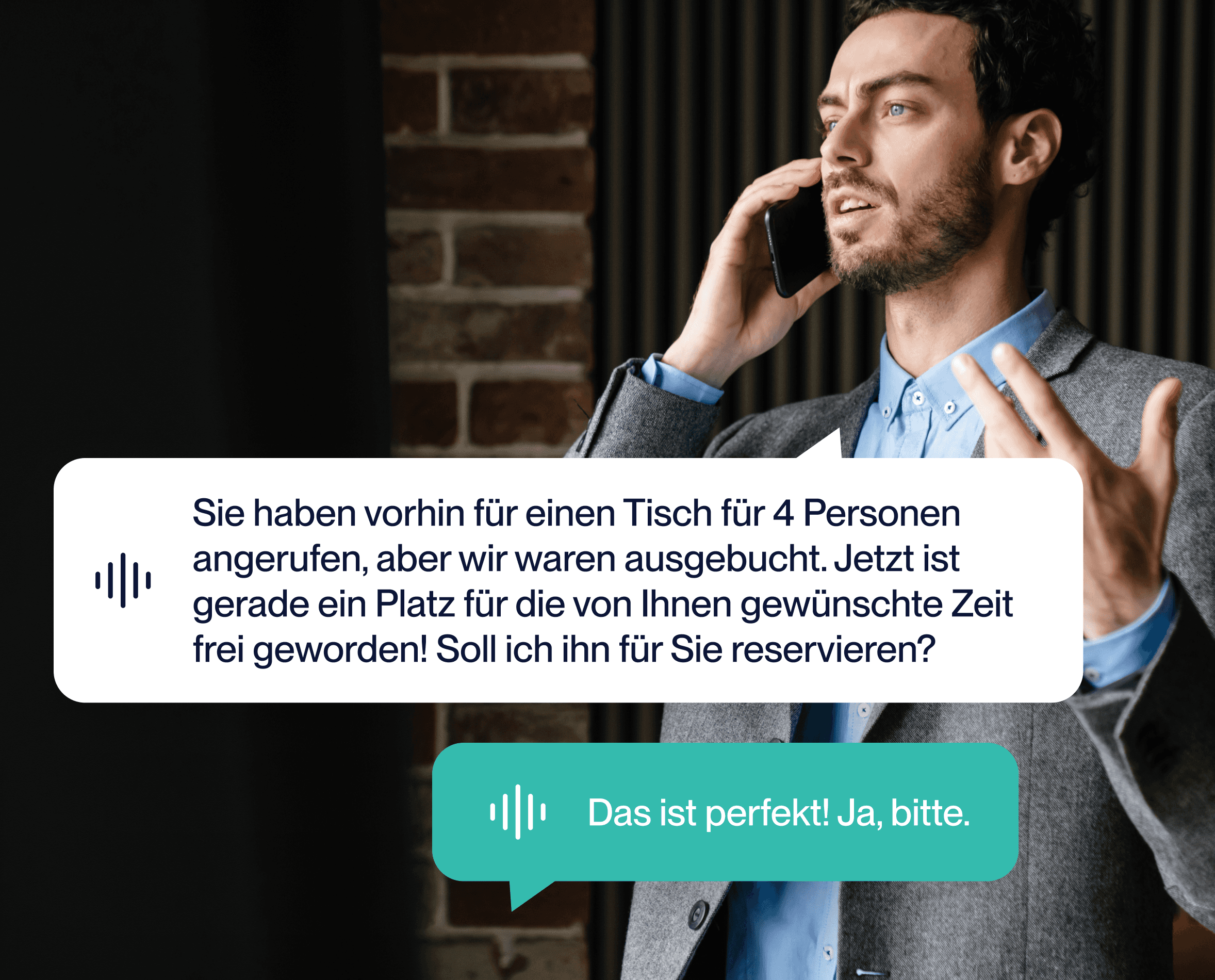 Haben Sie ein Restaurant, Hotel oder Gastgewerbe und erkunden, wie Sie KI anwenden können? Rufen Sie an, als wären Sie ein echter Kunde, und sehen Sie, wie unser Assistent reagiert und Reservierungen bearbeitet.