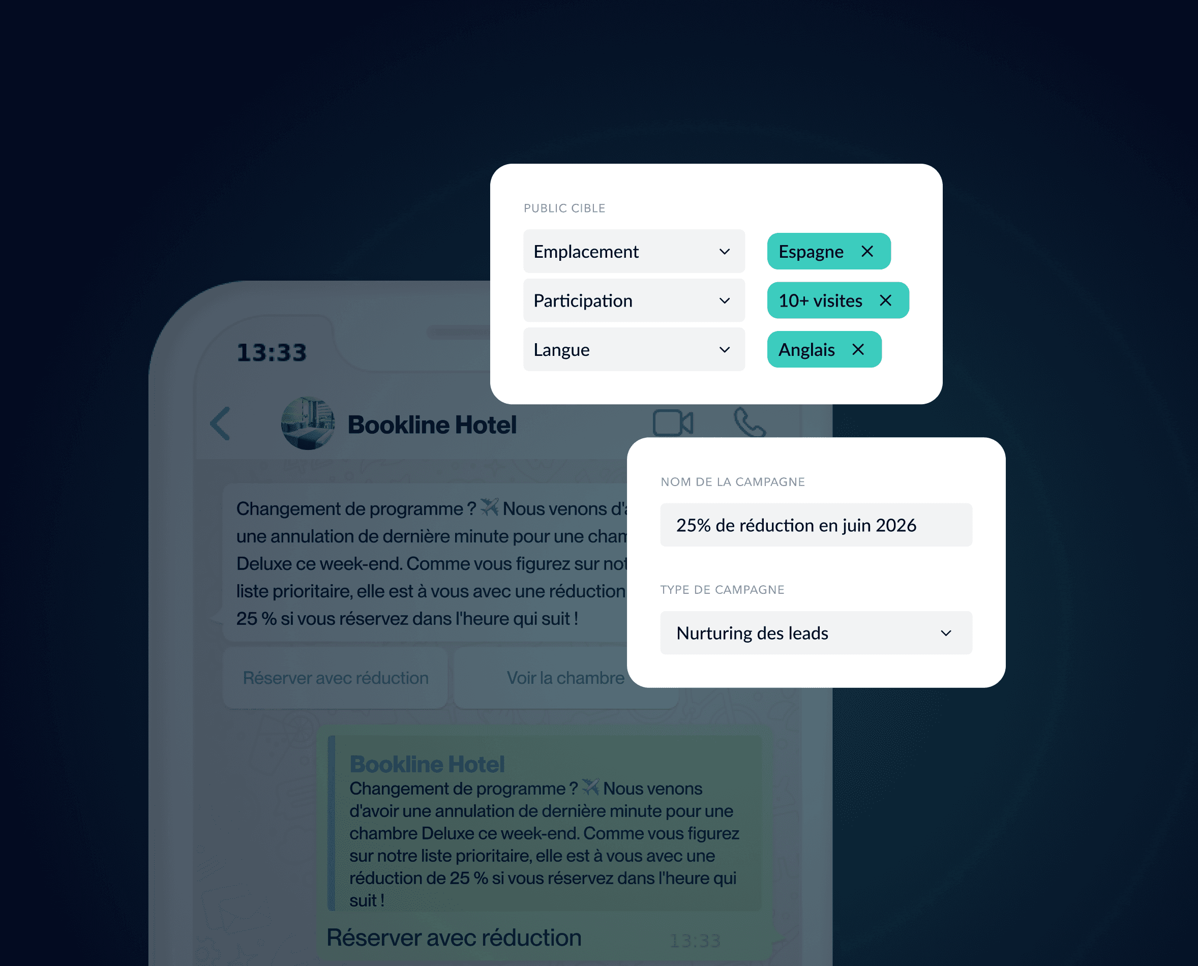 Découvrez comment les campagnes réengagent les clients non réservés, promeuvent les menus saisonniers, optimisent les créneaux de dernière minute et proposent des ventes additionnelles automatiquement.
