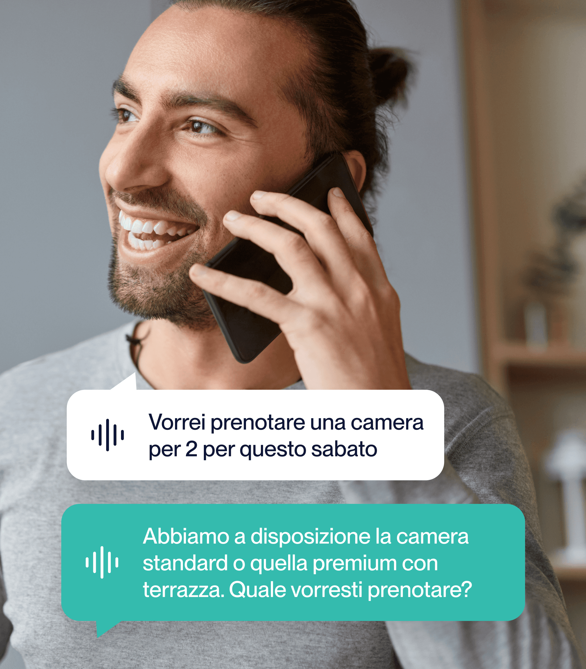 Trasforma ogni richiesta degli ospiti in un soggiorno confermato con IA vocale multilingue 24/7 per hotel — gestisci disponibilità, tipologie di camere, upgrade e richieste speciali in tempo reale, senza commissioni e senza perdere ricavi.